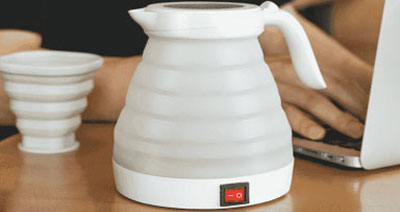 Bouilloire électrique plianteÉlément de vie pliant bouillonnement bouillonnant et bouilloire à chaud électrique portable. Matériau anxiale en silicone de grade de bébé -